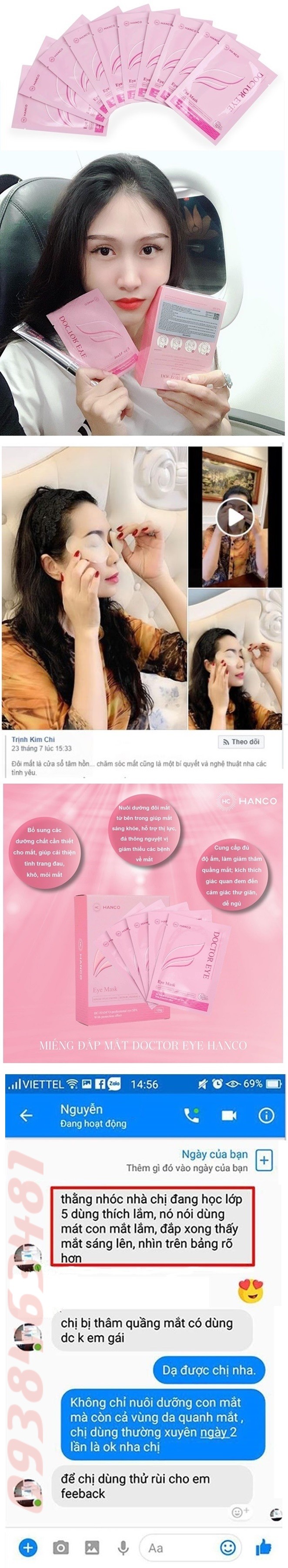 Giá bán Mặt nạ đắp mắt Hanco Doctor Eye : 360.000 đ/Hộp/20 cặp.